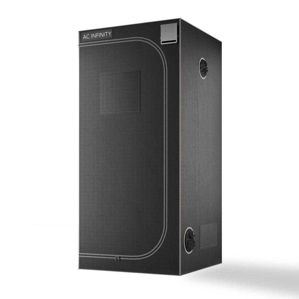 A grow tent designed to grow plants indoors by providing complete control over climate conditions. Featuring a quick-view observation window, this grow tent uses a waterproof oxford canvas with a 2000D thickness for higher durability and light-proofing. Cross-patterned diamond mylar lines the surface of the inner walls, which will reflect and maximize output from your grow light. To ensure maximum reflectivity and prevent light leaking, an inner ribbon stitching creates a seal that lines the zippers inside the grow tent. Additionally, the duct ports’ double cinching design closes them on either side to reinforce the light-proof sealing. Accessories include a waterproof floor tray, a built-in tool bag, and a mounting plate to install your controller onto the grow tent.
