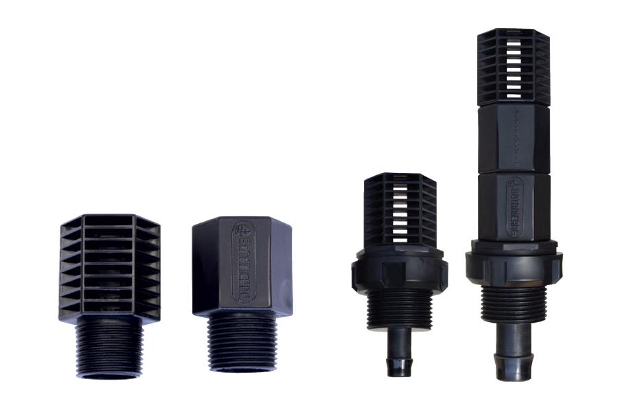 Interior threads which accept 3/4 inch standard pipe thread. Use as ebb and flow fittings and bulkhead fittings. Increased versatility: thread PVC pipe fittings into bulkhead fittings - ideal for use in aeroponic and drip applications.