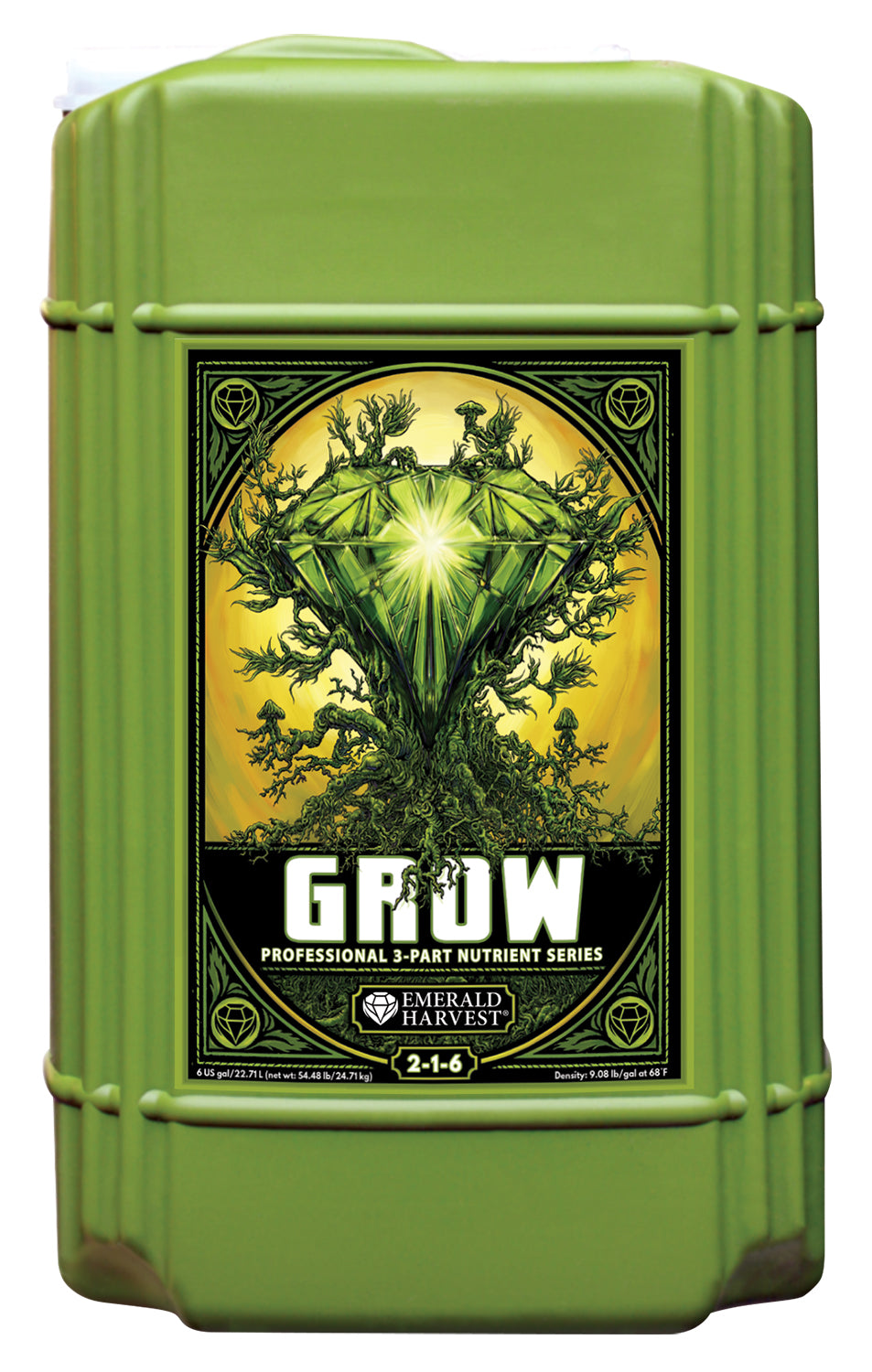 Give your crops what they need when they need it most with Emerald Harvest Grow, Micro, Bloom 3-part base nutrient series. Grow, Micro, Bloom supplies plants with precise nutrient formulations that deliver the right amounts of nitrogen, phosphorus and potassium throughout the crop life cycle. In addition to regulating the amounts of N, P and K so that your high-yield plants flourish, Grow, Micro, Bloom provides a rich mix of trace elements such as magnesium, cobalt and molybdenum as well as many chelated micronutrients such as copper, manganese, zinc and iron.